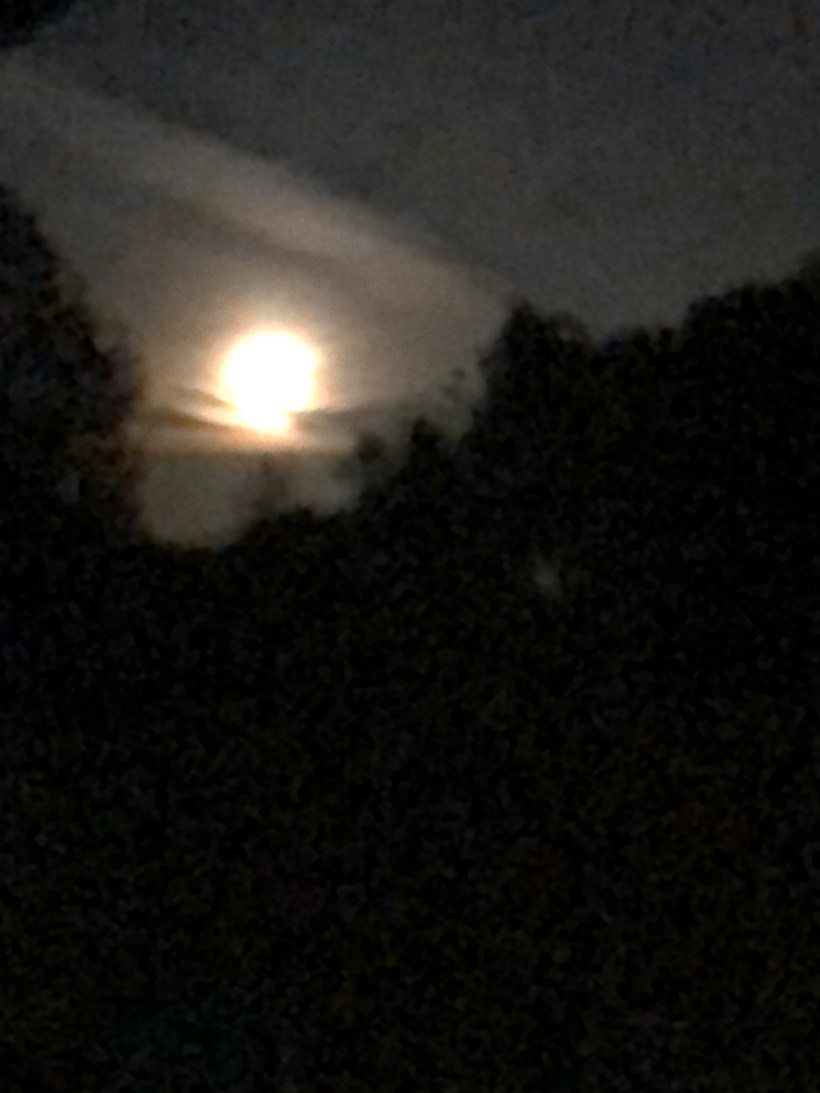 The picture of this full moon doesn’t really convey the absolute beauty of the night, but the idea is there. I just had to stop, get out of the car and capture the image. My day had been a little off kilter, but seeing the beauty and magic of this moon capped my day with a tender feeling that all was well.
