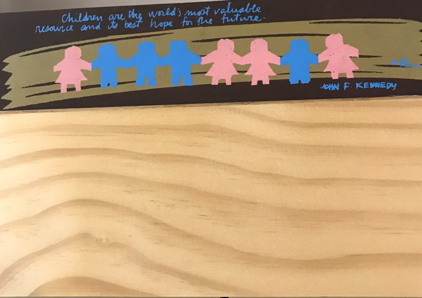 As I walked the hallway checking out new displays, the above caught my eye:  Children are the world’s most valuable resource and its best hope for the future”  John F. Kennedy.  I will share my reflections of the day from that quote.
